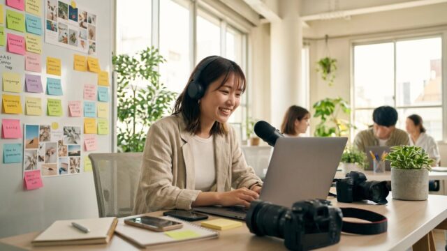 Midjourney、DALL-E、Stable DiffusionなどのAI画像生成ツールを使って、SNS用画像やブログのアイキャッチを作成します。デザインセンスよりも「プロンプト力」が問われる新しい職種です。